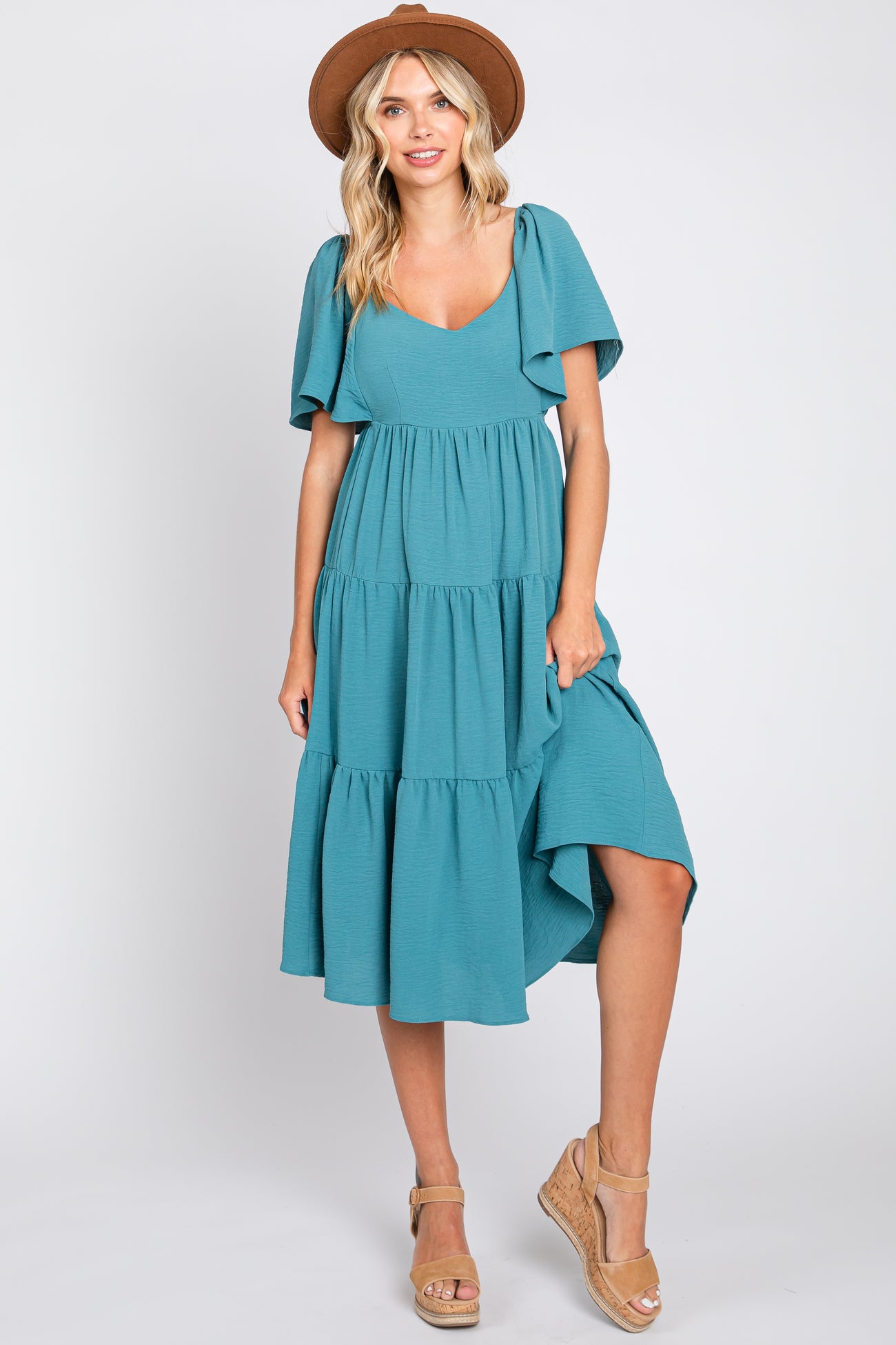 Teal Tiered Criss Cross Back Midi Dress