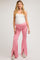 A pair of terry maternity lounge pants featuring flare legs, front slits and a raw hem.