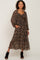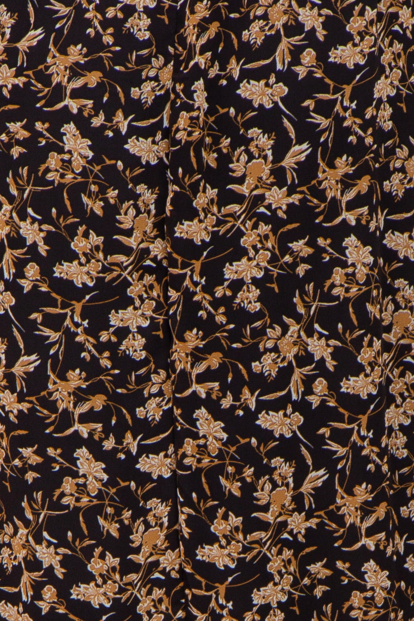 A chiffon floral print maxi dress featuring long sleeves, a ruffle hem, side pockets, a smocked top and a ruffle neckline.