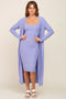 A solid ribbed cardigan and dress two piece set. Dress straps are not adjustable.