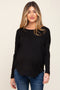 Black Waffle Knit Curved Hem Long Sleeve Top