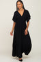 Black V-Neck Flounce Sleeve Maternity Maxi Dress