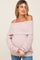 A solid off shoulder maternity sweater with a foldover neckline in a chunky popcorn knit material.