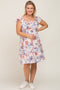 Cream Palm Print Smocked Flutter Sleeve Plus Dress