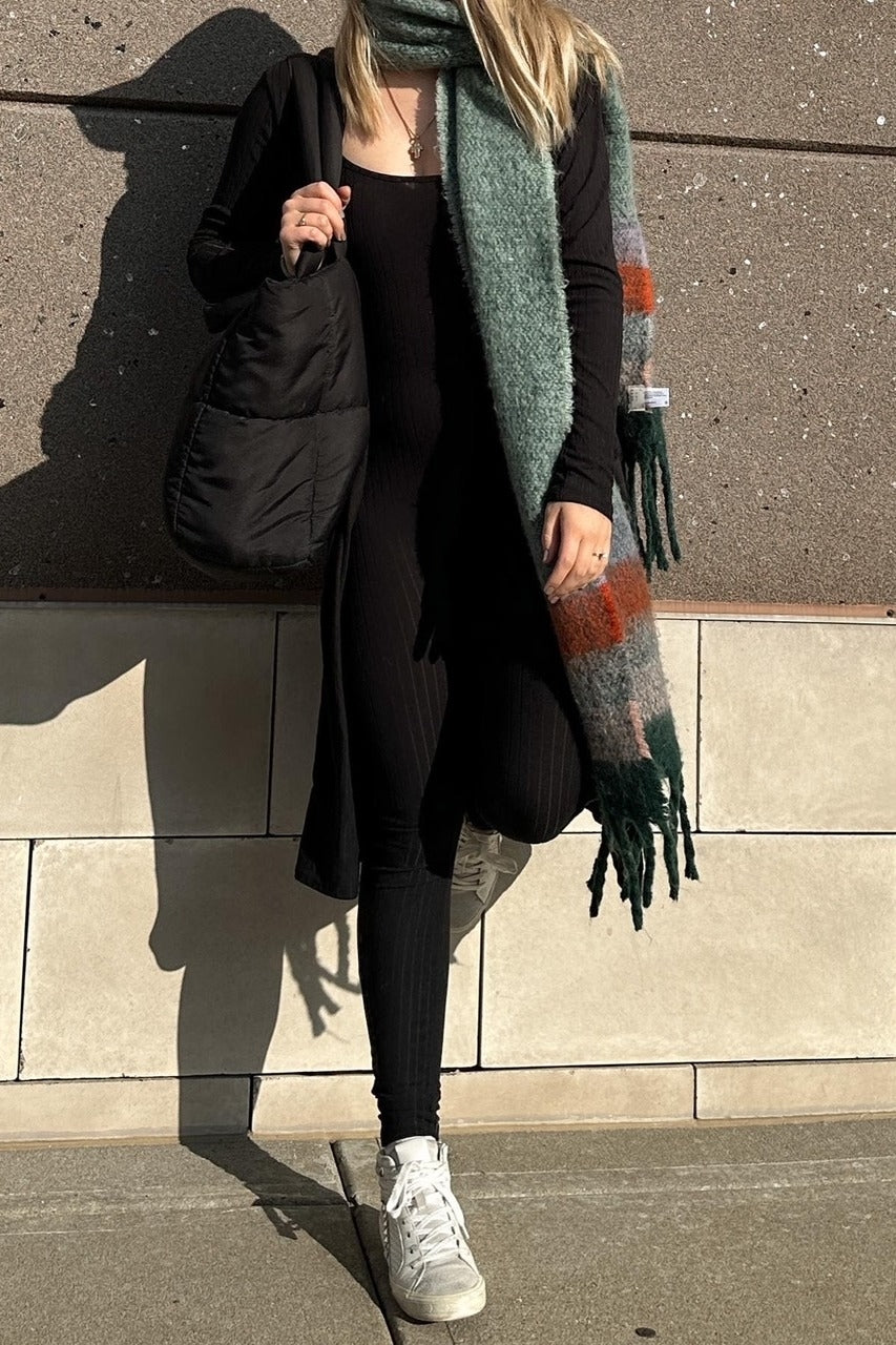 A ribbed knit jumpsuit set featuring a sleeveless fitted bodycon jumpsuit and a long sleeve cardigan.