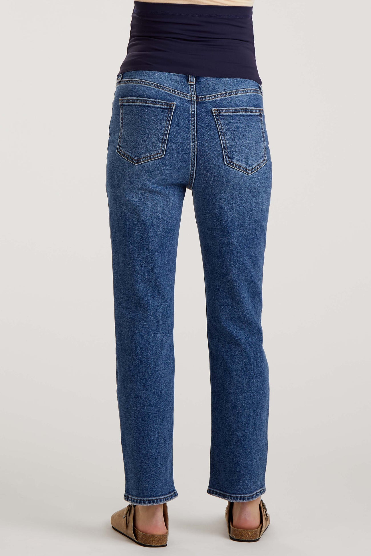Medium Wash Skinny Straight Cropped Maternity Jeans