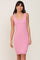 Details A rib knit dress featuring a scoop neckline. Content + Care