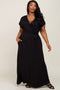 Details A solid maternity plus maxi dress with a wrap neckline and sash tie waist. Pocketed. Content + Care