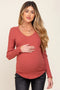A solid rib knit maternity top featuring a scoop neckline and long sleeves.