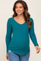 Olive Ribbed Scoop Neck Long Sleeve Maternity Top