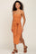 Details A floral, ribbed midi dress with a straight neckline, side slit, and an adjustable back tie. Content + Care