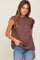 Brown Mock Neck Flutter Blouse