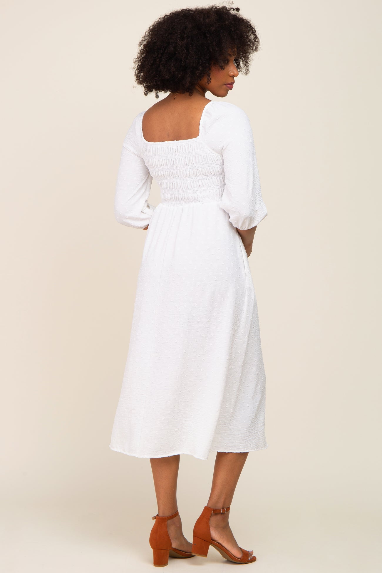 Ivory Swiss Dot 3/4 Sleeve Midi Dress
