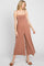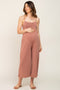 A soft knit jumpsuit featuring a square neckline, adjustable cami straps, side pockets and a wide hem.