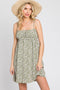 Light Olive Floral Ruffle Square Neck Shoulder Tie Maternity Dress