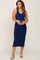 Navy Ribbed Sleeveless Ruched Side Slit Maternity Midi Dress