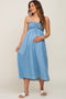 Details A chambray midi dress with a smocked top, adjustable straps, and an adjustable cinch at the bust. Content + Care