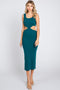 A solid knit midi dress with a scoop neckline and side cutouts.
