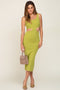 Details A solid knit midi dress with a scoop neckline and side cutouts. Content + Care