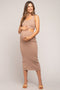 A solid maternity knit midi dress with a scoop neckline and side cutouts.