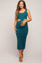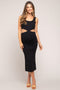 A solid maternity knit midi dress with a scoop neckline and side cutouts.