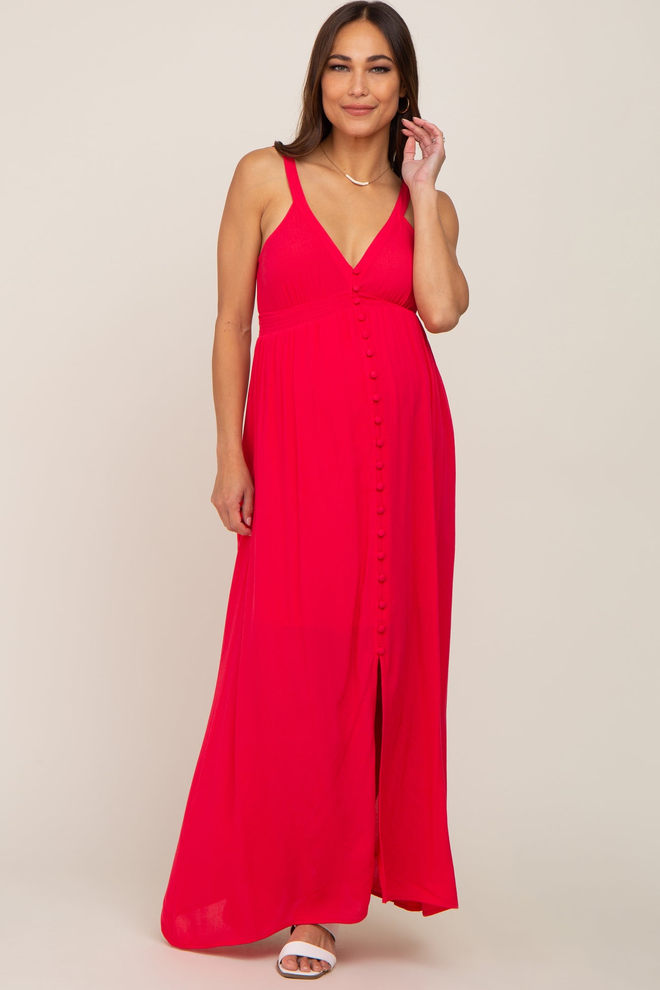 Fuchsia Button Front Accent Maternity Maxi Dress