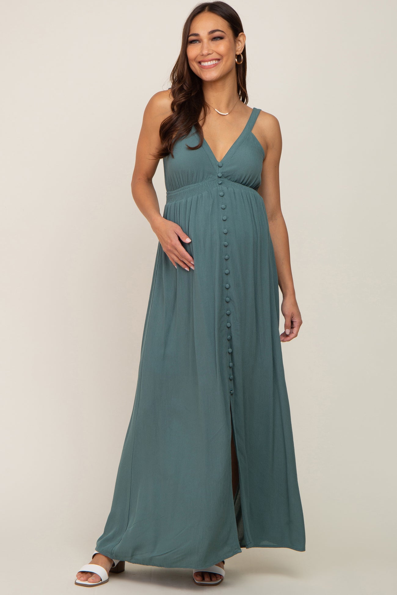 Teal Button Front Accent Maternity Maxi Dress