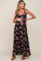 A floral print maxi dress featuring a v-neckline and adjustable ties at the shoulder.
