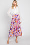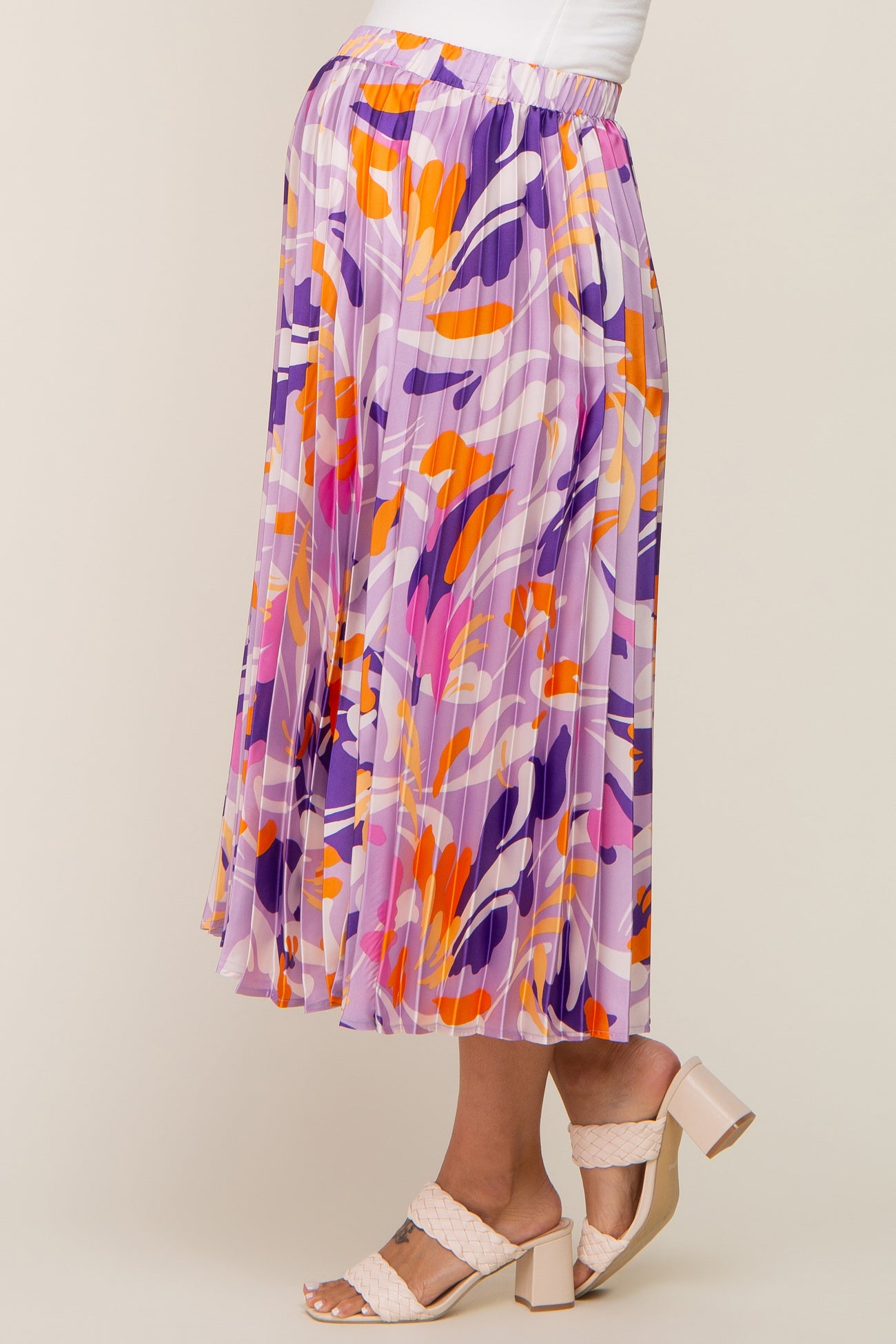 Lavender Printed Satin Pleated Maternity Midi Skirt