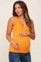 A solid ribbed maternity tank top with a scoop neckline.
