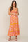 Yellow Floral Front Knot Cutout Crochet Trim Maternity Maxi Dress