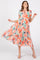 Aqua Floral Button Front Short Sleeve Tiered Midi Dress