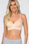 Details A seamless fabric maternity nursing bra featuring a v-neckline, padded bust, adjustable strap with a nursing clasp, and a hook and eye back closure. Content + Care