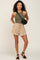 Beige Drawstring Frayed Hem Shorts