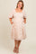 Beige Floral Embroidered Short Puff Sleeve Maternity Plus Dress