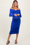 Beige Floral Print Long Sleeve Plus Midi Dress