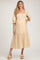 Beige Floral Square Neck Smocked Fringe Maternity Midi Dress