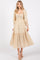 Beige Floral Square Neck Smocked Fringe Midi Dress