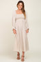 Beige Gauze Smocked Maternity Midi Dress