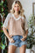 Elevate your casual wardrobe with our Beige Lace Inset V-Neck Short Sleeve Top. Featuring a soft waffle-knit body that offers cozy comfort, this top is beautifully accented with delicate lace insets on the sleeves and shoulders for a touch of feminine elegance. The relaxed fit and ribbed V-neckline create a flattering silhouette perfect for everyday wear. Pair it with your favorite denim shorts or jeans for an effortlessly chic look. Ideal for warm weather and layering, this versatile top brings a blend of texture and style to any outfit. Stay comfortable and stylish all day long!