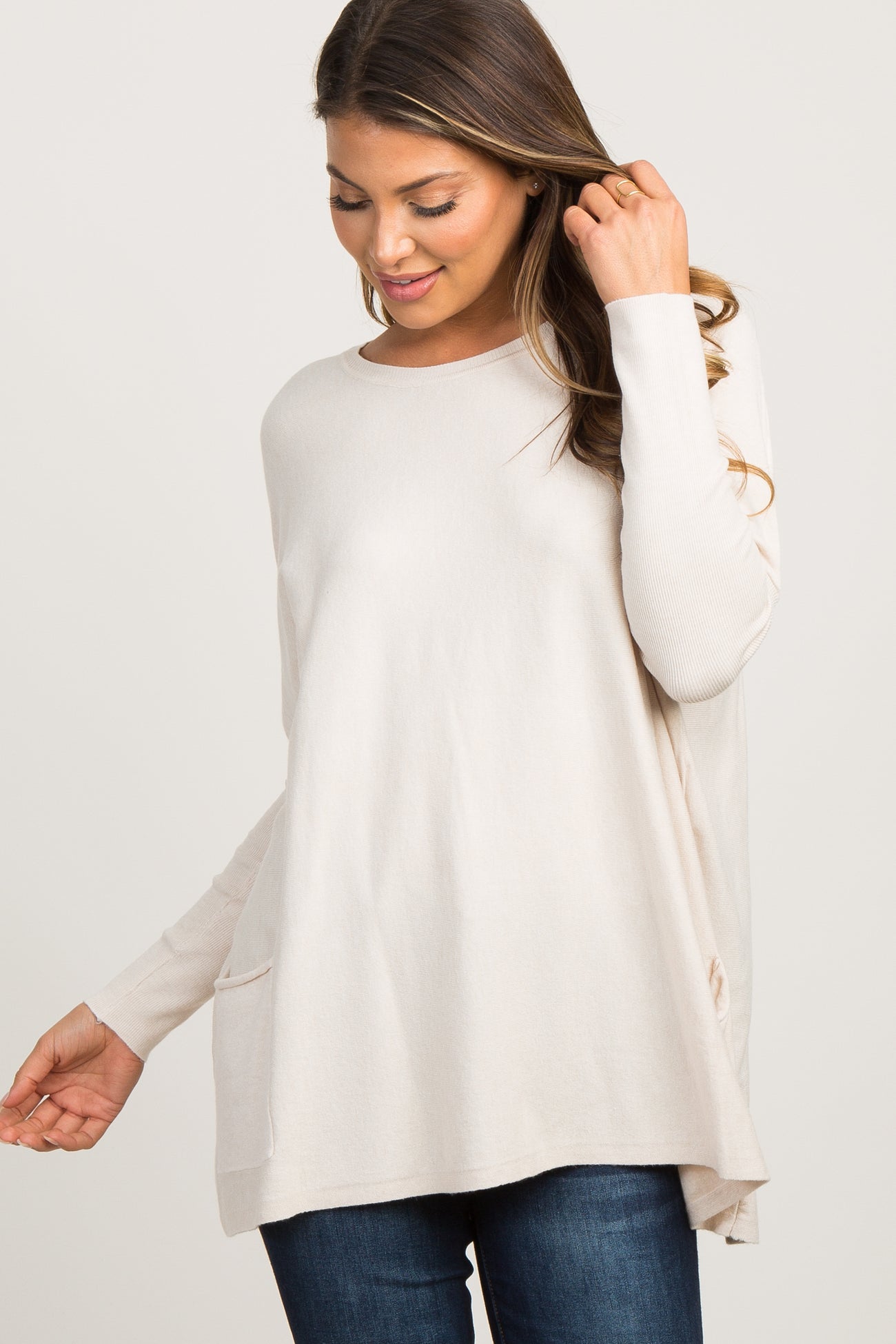 Beige Pocketed Dolman Sleeve Maternity Top