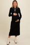 Beige Ribbed Contrast Trim Polo Maternity Midi Sweater Dress
