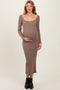 Beige Ribbed Henley Neckline Midi Sweater Dress