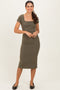 Beige Ribbed Ruched Midi Dress