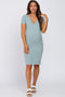 Beige Ribbed Ruched Side Fitted Short Sleeve Dress