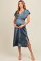 Beige Satin V-Neck Fringe Detail Maternity Midi Dress