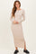 Elevate your wardrobe with this Beige Scoop Back Long Sleeve Maxi Dress, designed for effortless style and comfort. Crafted from a soft, stretchy fabric, it hugs your silhouette while offering all-day ease. The minimalist front features a classic scoop neckline and fitted long sleeves, perfect for layering or wearing solo. The standout scoop back adds a subtle touch of allure, making it ideal for both casual outings and dressier occasions. With its timeless beige shade and versatile midi length with side slit, this dress is a must-have staple for any season. Pair with chunky loafers or heels to complete your look.