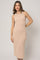 Beige Sleeveless Ribbed Midi Dress