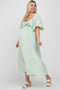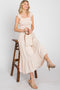 Beige Smocked Ruffle Accent Sleeveless Maternity Midi Dress