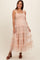 Beige Smocked Ruffle Tiered Tulle Maternity Midi Dress